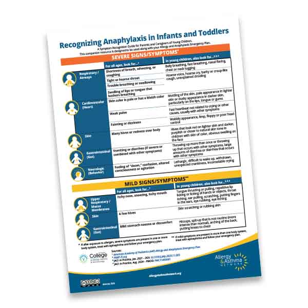 The Recognizing Anaphylaxis in Infants and Toddlers infographic offers a convenient and visual way to spot the unique signs and symptoms of anaphylaxis in young children. From “barky” coughs and unexplained drooling to “wobbly” movements or inconsolable crying, the infographic helps parents and caregivers identify the subtle cues that require immediate action. Make sure you have this resource for your home, daycare, or as a companion to your Allergy and Anaphylaxis Emergency Plan.